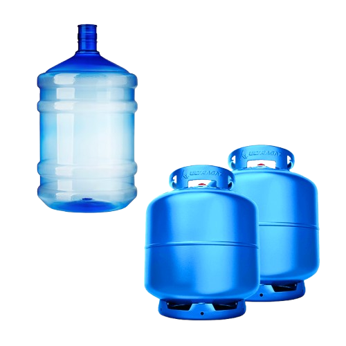 Combo completo com 1 botijão de gás 13kg + 1 garrafão de água 20L. Praticidade e economia em um só pedido.