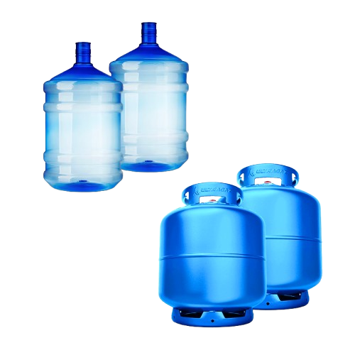 Combo completo com 1 botijão de gás 13kg + 1 garrafão de água 20L. Praticidade e economia em um só pedido.
